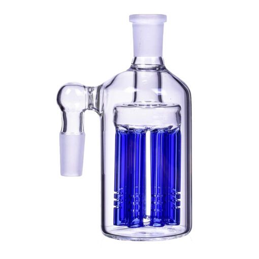 Step up your filtration game by adding this 18mm/18mm 8-Arm Tree Perc Ash Catcher to your bong or water pipe. This ash catcher features a large 8-arm tree percolator that provides great filtration before your smoke reaches the water in your bong. Each arm of the percolator has three diffusion slits that create a ton of bubbles and only leave you with the cleanest smoke possible. The ash catcher will also trap any debris from entering your bong and keep it cleaner, longer. This heavy duty ash catcher is available in blue and green and with a 90-degree joint. Compatible with any 18mm female connection.