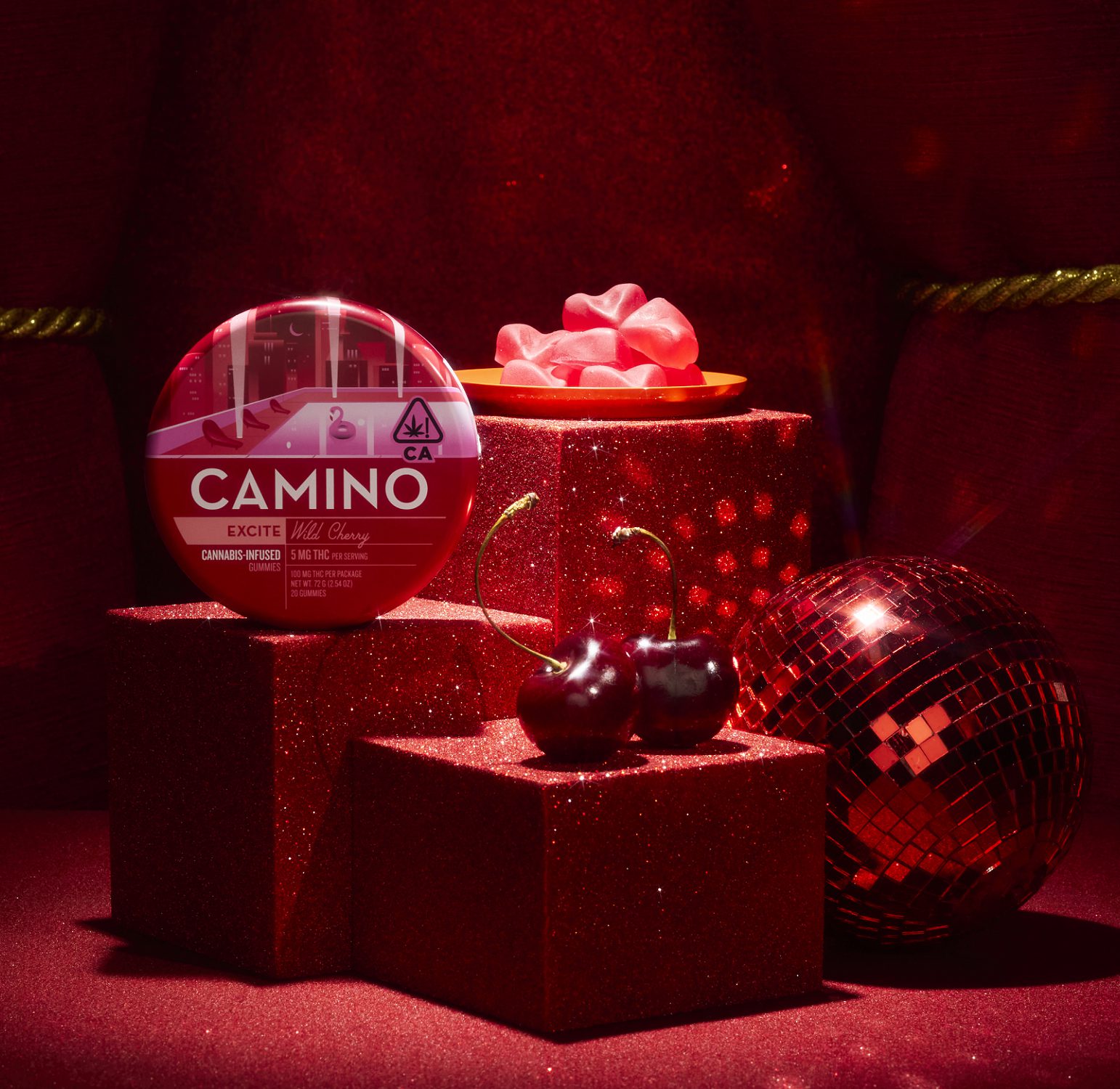 Get the rooftop party started with Wild Cherry Camino gummies. The invigorating blend of sativa-like terpenes with sweet, fruity notes of tart cherry will have you dancing all night long.