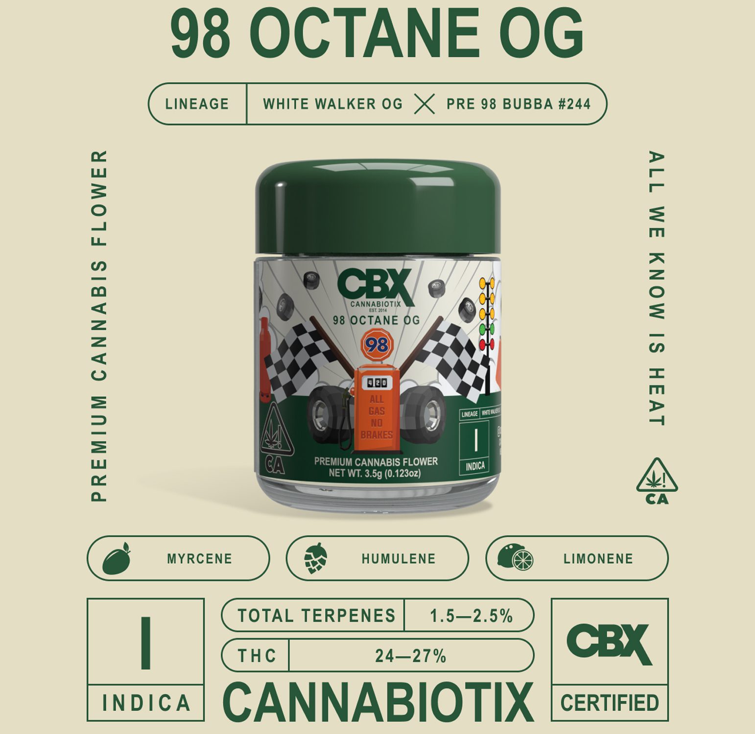 A highly distinctive cut created by crossing the classic Pre-98 Bubba with new school legend White Walker OG, this pheno delivers a sweet and soapy kush. A dazzling display of colors including green, blue and purple, these resin-rich, chunky buds are a true representation of the beauty in nature. Incredibly smooth smoke, the flavor profile is earthy and refreshing. A slow, creeping high that will have you buzzing just right, the effects are euphoric, sedating and joyful; ideal for treating anxiety and/or depression.