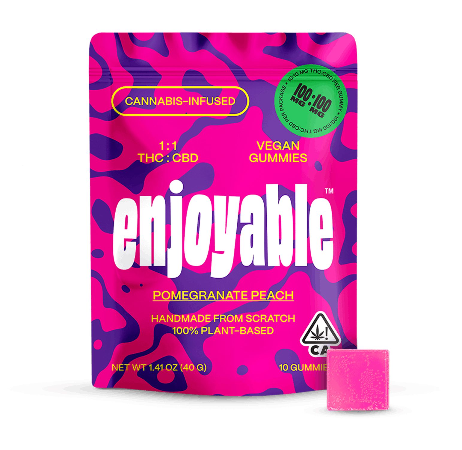 Enjoyable 1:1 THC:CBD Pomegranate Peach Vegan Gummies